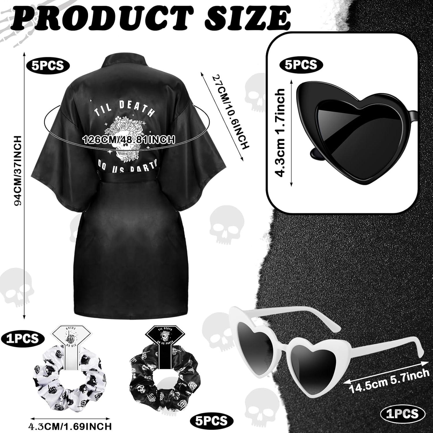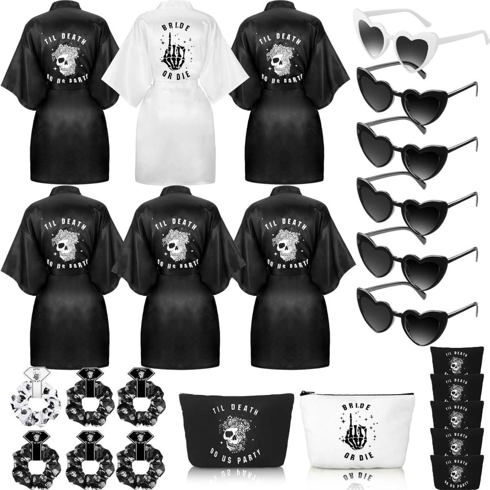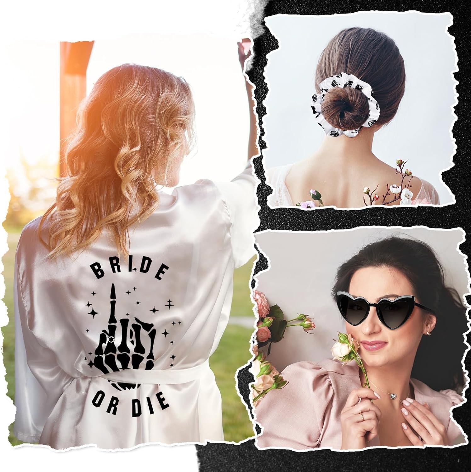 Domensi 24 Pcs Bride or Die Bachelorette Party Decorations Bridesmaid Robes Gift Sets Till Death Do Us Party Decorations Skull Black and White Bridal Robe for Bridal Shower Gothic Wedding Party Dress