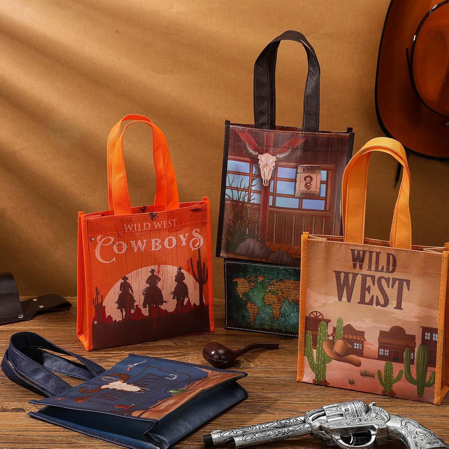 What Will You Get: you will receive 24 pieces of west cowboy themed goodie bags for adults in 4 styles, 6 of each style; These colorful bags can be applied as party gift packing bags, which can hold enough gifts
