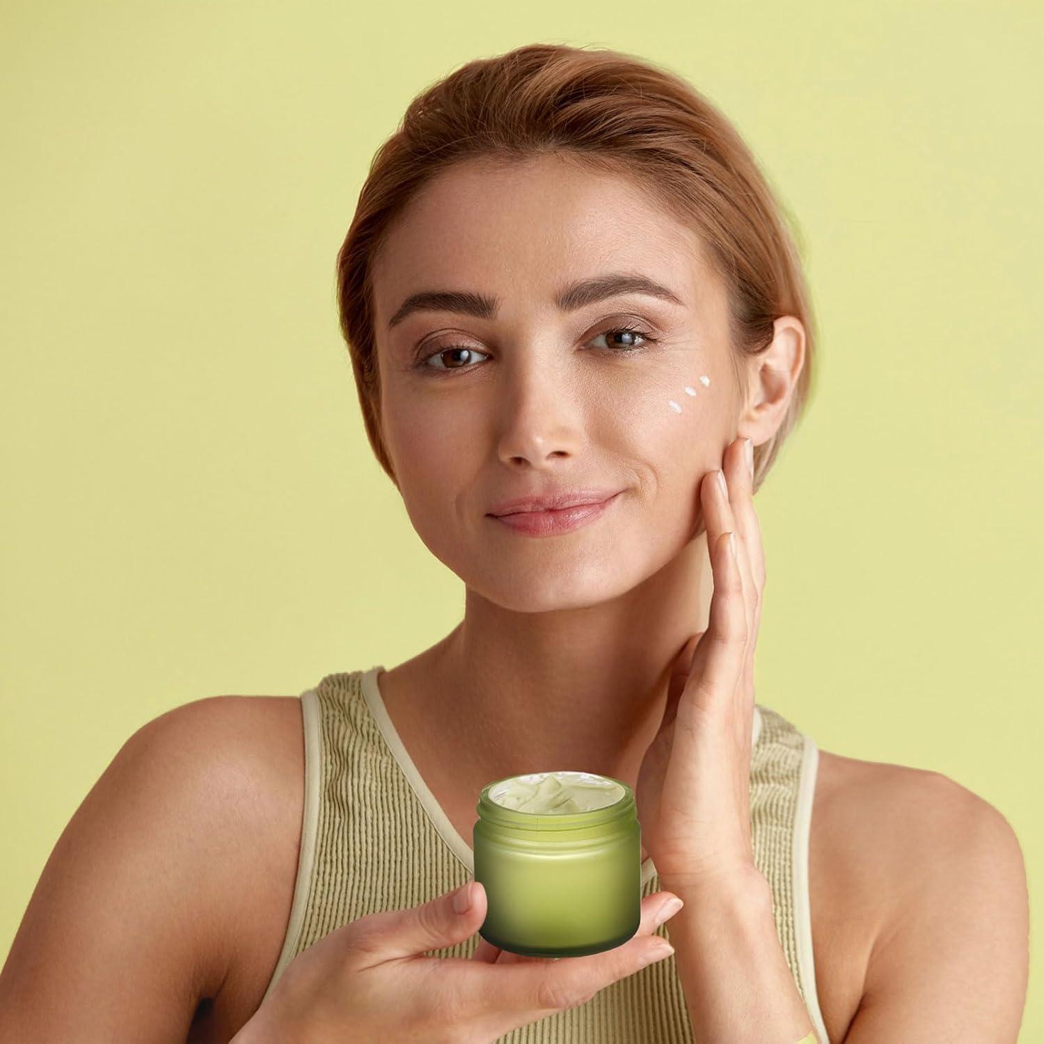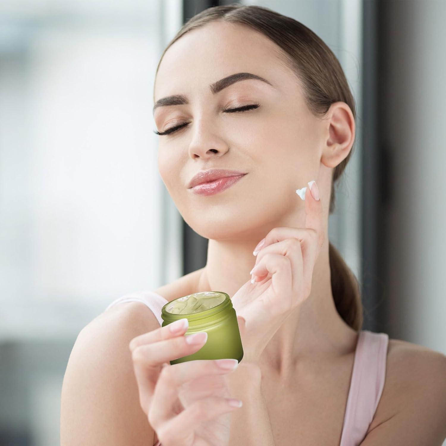 imageDomensi 72 Pcs 2 oz Glass Jars with Lids Travel Size Round Leakproof Empty Cosmetic Jars with Inner Liners Lid for Storing Makeup Lotions Face Cream Ointments Candle DIY Making BlackPea Green