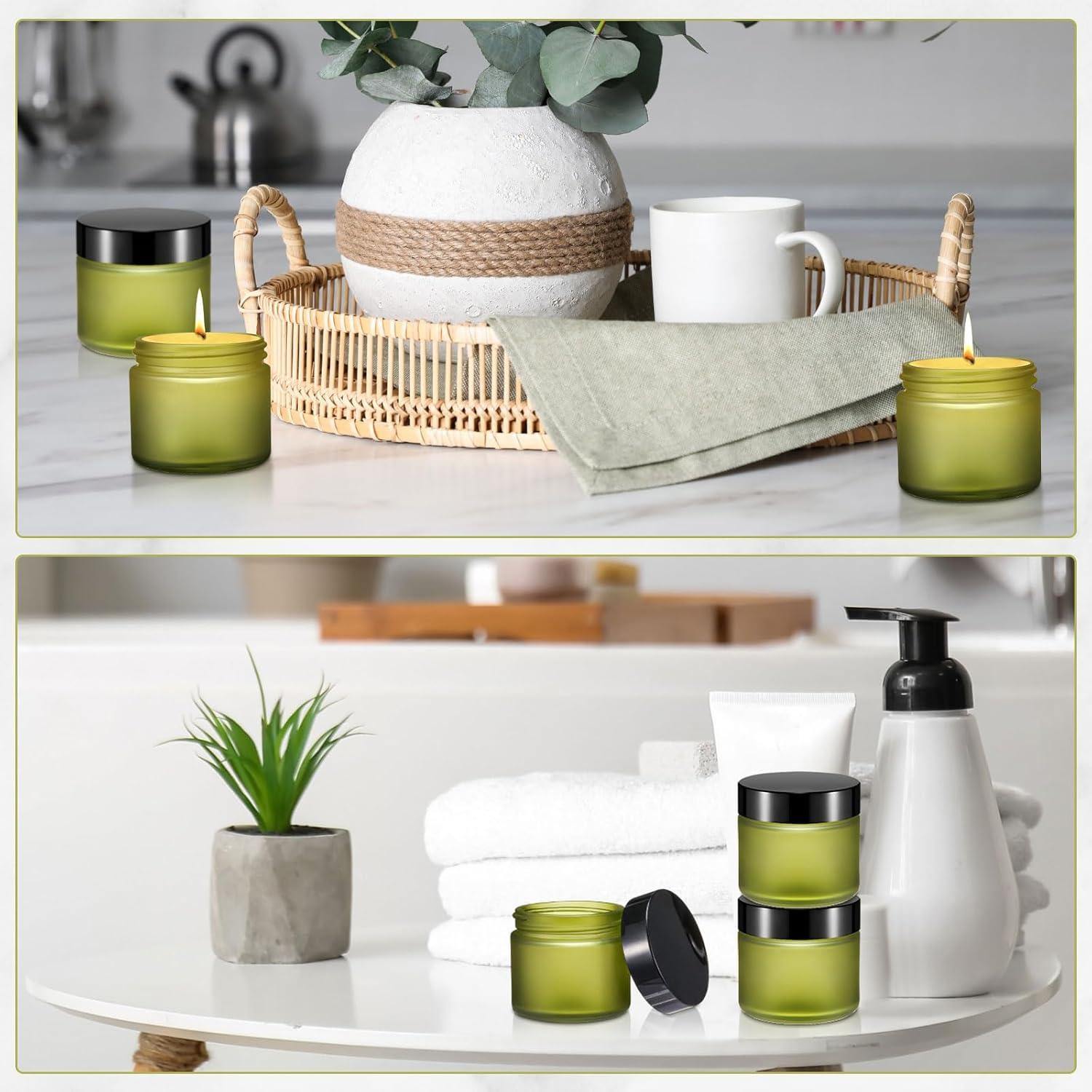 Domensi 72 Pcs 2 oz Glass Jars with Lids Travel Size Round Leakproof Empty Cosmetic Jars with Inner Liners Lid for Storing Makeup Lotions Face Cream Ointments Candle DIY Making (Black)(Olive Green)